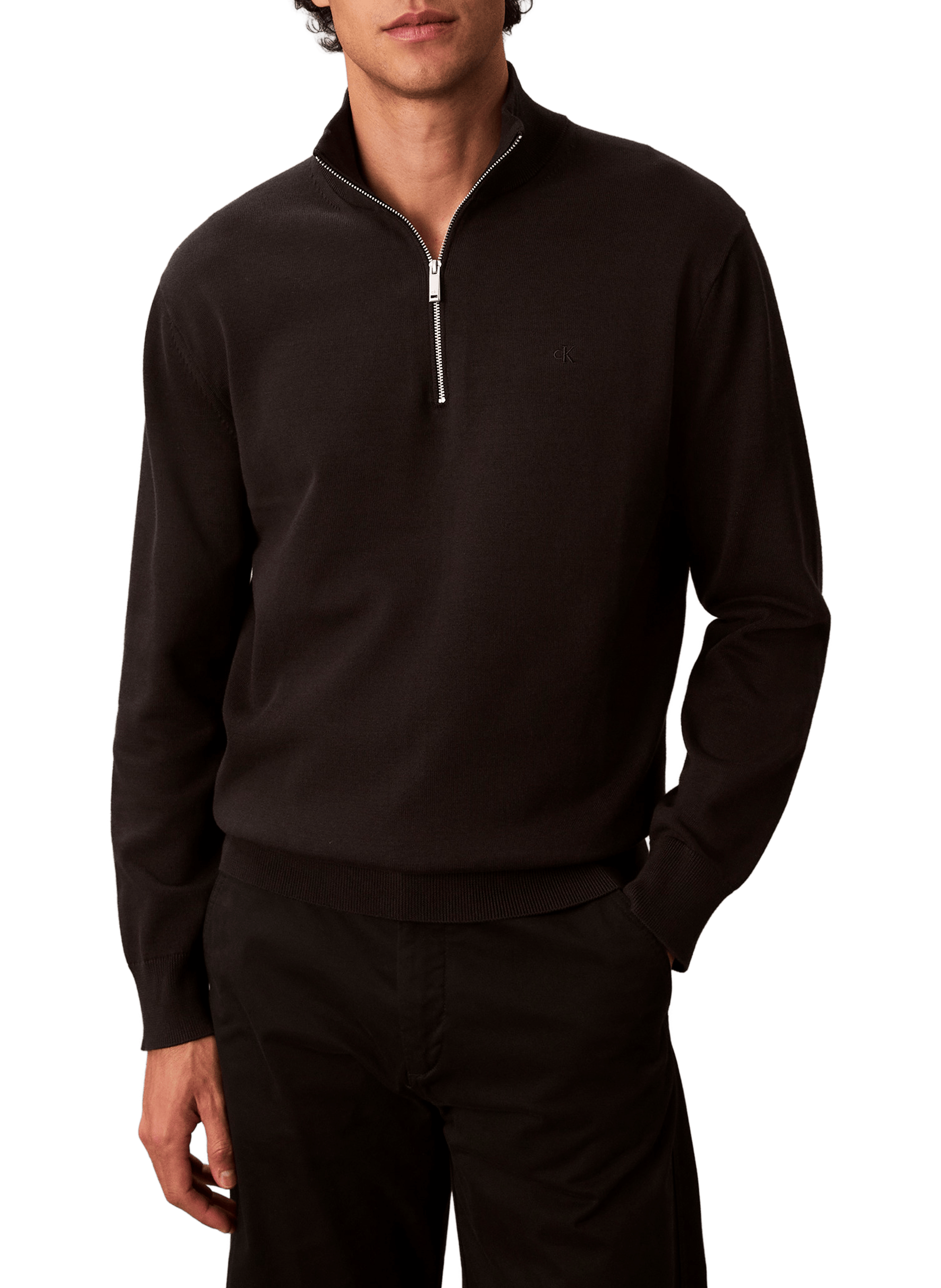 CALVIN KLEIN Pull col montant zippé en coton Noir