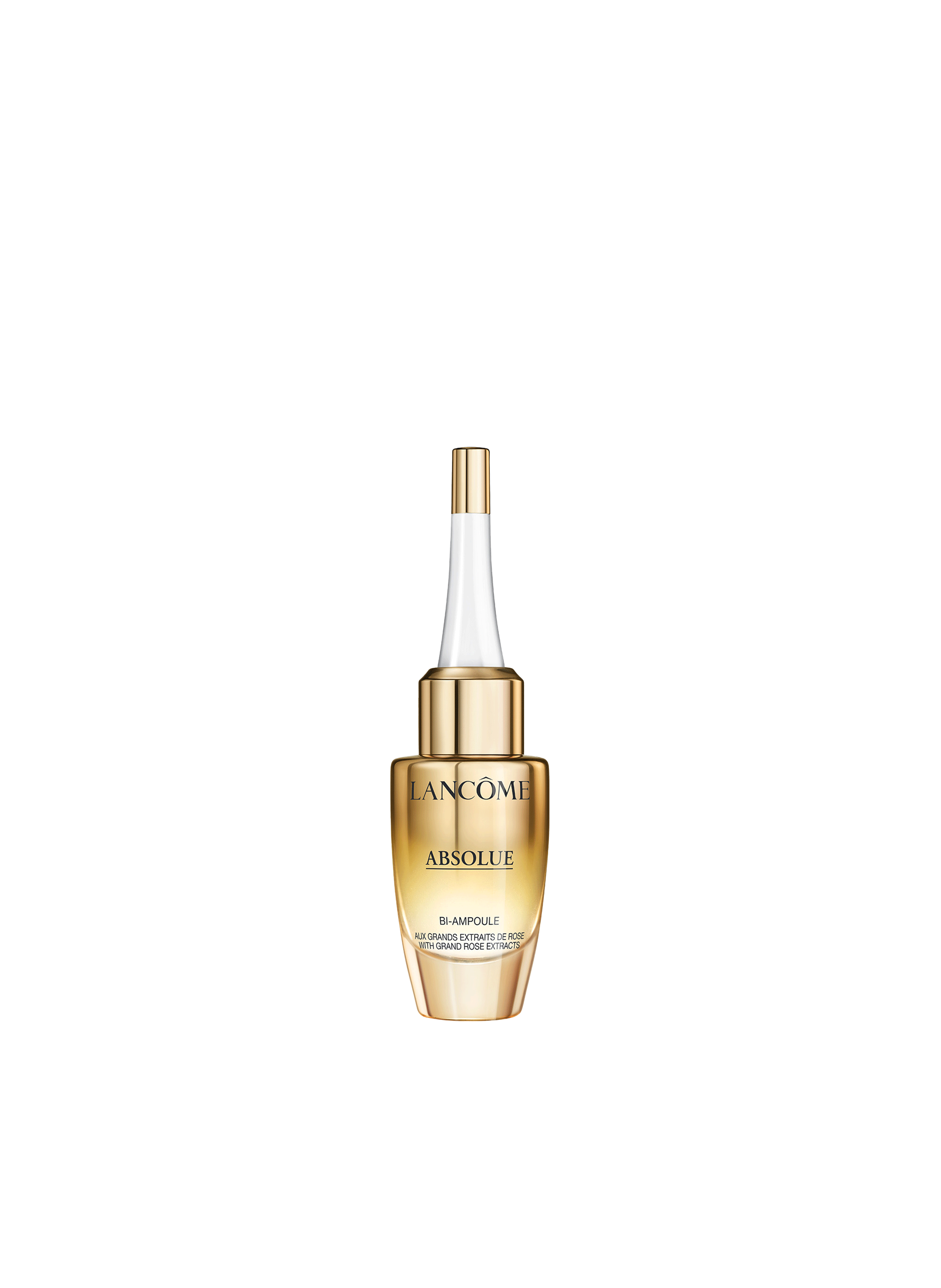 Absolue creates the Ultimate Repairing Anti-Aging Bi-Ampoule, a dual-phase formula inspired by highly concentrated beauty rituals with care ingredients. Formulated with a dual-phase technology to be activated upon first use, the formula is enriched with pure oleo-distillates, tri-ceramides, and Grand Rose Extracts by Lancôme. Our fast-absorbing formula instantly nourishes the skin and protects it against external aggressions.