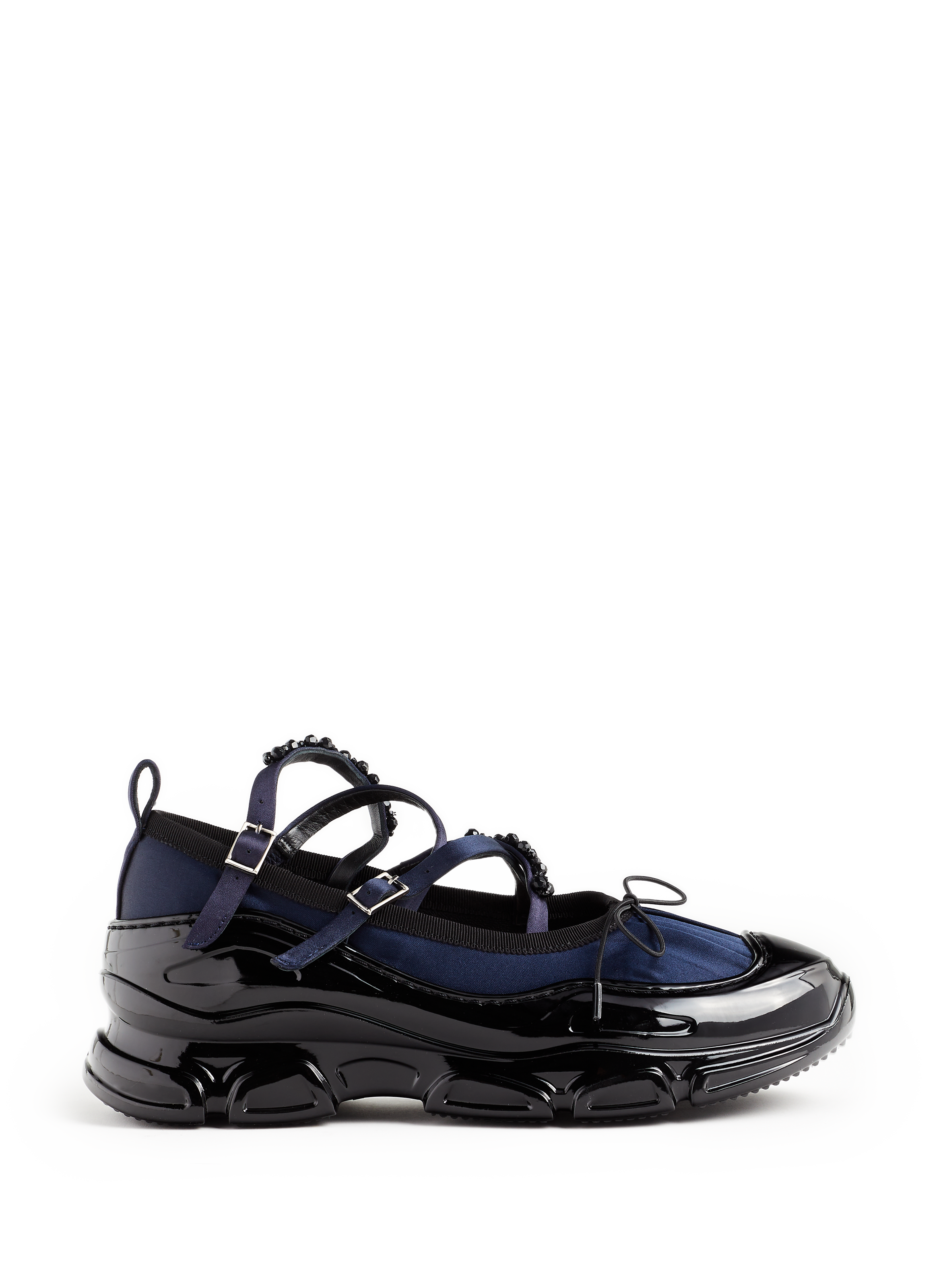 For those adept at contrasting looks, go for the hybrid ballet flats by Simone Rocha and Prada, half ballet, half basketball.
