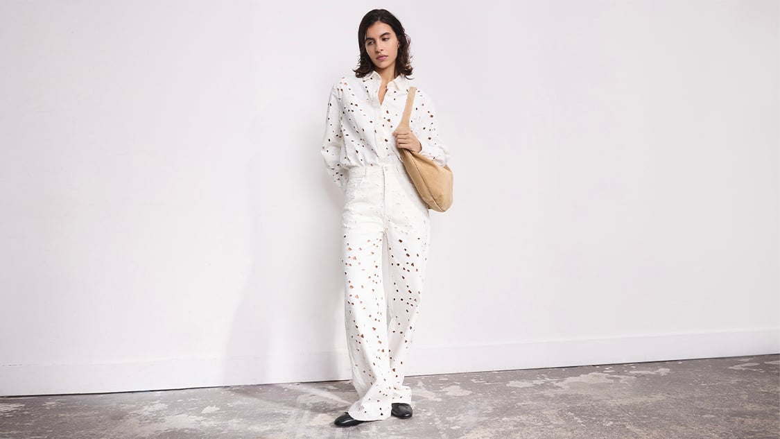 At the border of off-white and pearly gray, the Cloud Dancer asserts itself as the manifest hue of the women's wardrobe as the sunny days approach. Popularized by Pantone at the beginning of 2026, this airy shade charms with its subdued elegance and modernity.